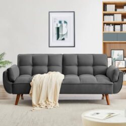 Buy Homies Life Convertible Futon Sofa Bed, Linen Sleeper Couch, 75" W Modern 3 Seater Tufted Sofa with Soild Wood Legs and Adjustable Backrests for Small Spaces, Living Room,
